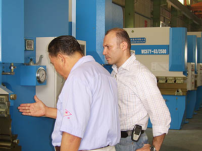 2005年6月23日上午,位于沙特阿拉伯首都利雅得市的沙特纳美拉空压机厂厂长阿贝德·塔巴拉等一行来我公司参观考察 樱花视频网站,阿贝德先生此行主要来考察我公司折弯机,剪板机产品,考察中对我公司产品外观,结构均表示满意并与我公司达成进一步合作的意向.
