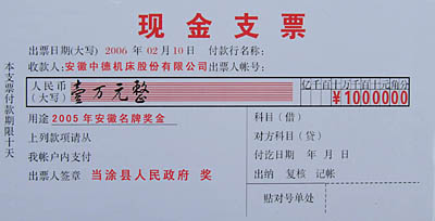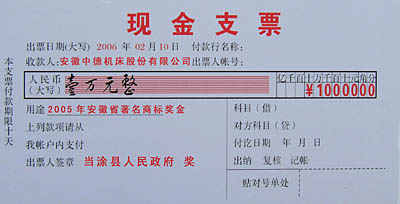 “中德机床”获当涂县2005年度“创立品牌奖”