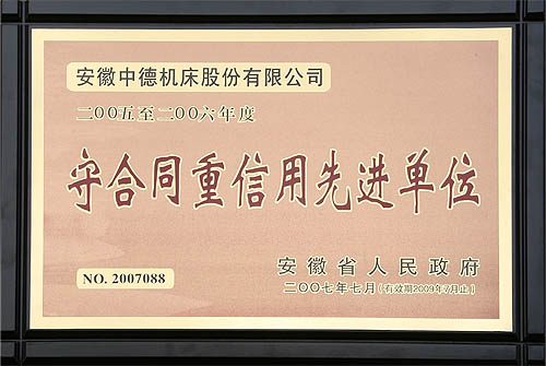 近日,安徽中德机床股份有限公司被安徽省人民政府授予2005-2006年度“守合同重信用先进单位”这一称号,这也是我公司继由马鞍山市工商局,市人民政府,省工商局多次授予此类称号后,再次获得的更高级别的荣誉, “守合同重信用”活动是目前政府对企业合同信用的一种综合评价活动,旨在促进企业弘扬诚实信用的道德风尚,建立企业信用体系,营造诚实守信的市场环境,我公司在生产经营中始终坚持“真正做到对客户利益最大的保证,让客户实实在在的满意”的经营宗旨,在维护自身合法权益的同时,不断积累,努力提升经营管理水平,在为企业带来经济效益的同时,还带来了巨大的社会效益,公司多次获得纳税大户和依法纳税先进企业等荣誉, 与此同时,我公司加大争创守合同重信用企业的宣传力度,充分利用网络资源 樱花视频网站,学习教育等形式,大力宣传争创守合同重信用企业,合法诚信经营的重大意义,公司建立了比较科学合理的合同管理机制,狠抓落实,公司高层一直具备较强的法律意识和合同管理水平,重视商业信誉和合同管理工作,更是带头学习合同法及其他各项法律法规,公司的有关从业人员熟悉并利用这些法律法规解决经营中出现的合同管理问题,公司内部建立了诚信守信的奖惩机制,对于依法经营,维护公司商业信誉的员工给予重奖,对于违法经营和损害公司形象的单位和员工进行严厉的处罚,从公司到各个营业网点都严把合同签订关和履行关,凡重大经济合同条款必须由公司领导小组评审决定,其它合同必须经法律事务部律师审核把关后才能加盖合同专用章,在合同条款的实施过程中,严格按照质量,环境,职业健康安全认证的要求,将合同中的目标细化分解,将各项责任落实到人,以严格的奖罚措施督促和制约,确保合同的各项条款按期兑现, “守合同重信用先进单位”的殊荣对我们既是鼓舞,又是鞭策,今天取得的荣誉,对中德来说应是一个全新的起点,我们要以这份荣誉为动力,积极开拓,努力进取,我们相信,公司的明天会更加辉煌。