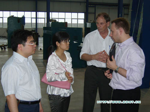 尽管天气非常炎热,下午还下起了暴雨,但这丝毫没有影响他们参观的热情,稍作休息后,Peter和Daniel 就迫不及待的随同公司领导及工作人员来到了我们的大型装配车间,在这里,他们审视的眼光扫过每一台机器,然后都满意的点点头,期间不断的向随行的工作人员提问 樱花视频,非常的认真,我们的工作人员都耐心的一一解答, 参观过后进行了小小的座谈,两位客人都非常的幽默风趣,虽然谈的都是工作,却让在场的每一个人都感觉非常的轻松,两位表示对我们的产品非常满意,对以后的合作非常有信心,并初步拟定了订购计划。