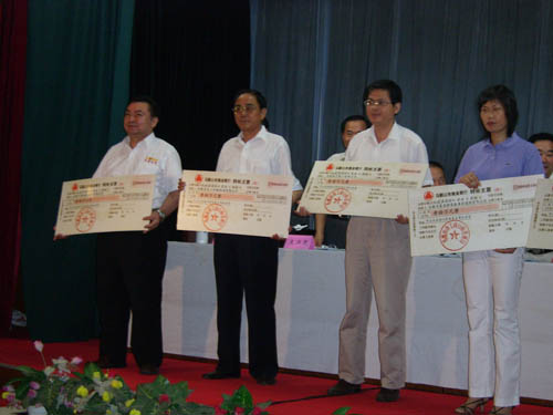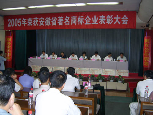 2006年7月26日下午,马鞍山市2005年获省著名商标企业表彰大会在市政府东二楼会议室举行,出席本 次会议的主要领导有省工商局副局长黄家华,市人大常委会副主任杜永田,市政府副市长刘荣华,市政协 副主席孙文植,市政府副秘书长王兴无,省工商局商标局局长刘国建等, 会议由市工商局局长耿锦昌主持,市工商局副局长罗耕宽通报了2005年全市商标发展情况,省工商局 商标局局长刘国建宣读了省工商局授予2005年省著名商标企业的文件,市政府副秘书长王兴无宣读了市政府对我公司等8家获省著名商标企业予以表彰的通报,会议对获奖的8家企业授奖,给每个企业重奖10万元 ,会议听取了马钢,中德机床 樱花视频网站,洪滨丝画等三企业代表的发言,最后,省工商局副局长黄家华,市政府副市长刘荣华均发表了重要讲话,希望受表彰的企业锐意进取,再接再厉,不断加强企业的产品质量和诚信 建设,进一步做好商标使用和推广工作,促进企业加快发展,各相关部门和单位要进一步加强商标管理工 作,鼓励我市更多的企业争创省著名商标和中国驰名商标,为推进我市东向发展,加快实现“两个率先” 作出更大贡献。