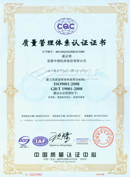 2010年4月,我公司顺利通过了ISO 9001:2008版换证复审,获得认证证书(证书编号:00110Q23628R2S/3400),在此次复审过程中,中国质量认证中心(CQC)对我公司的质量体系运行情况进行了全方位严格审核 樱花视频网站,并对中德公司质量管理工作给予了充分的肯定, ISO9001:2008新标准于2008年底发布,较于以往,它更多地关注企业对客户的满意度,强化和细化企业对客户满意度的监控手段,更加真实地反映出客户对企业产品和服务的满意度状况,而一直以来,中德公司就非常注重客户满意度的调查和改进工作,坚持不懈地进行质量管理体系的建设工作,与 ISO 9001:2008的诸多要素非常吻合, ISO 9001:2008换版认证的顺利通过,是中德公司不断强化和改进质量管理,不断提高客户满意度的必然结果,在质量管理与“国际接轨”的道路上,中德公司将继续在质量方面狠下功夫,保持长期严格的质量管理和控制,使质量体系在实施过程中更加完善,为企业发展注入系统保障,为客户创造更大价值。